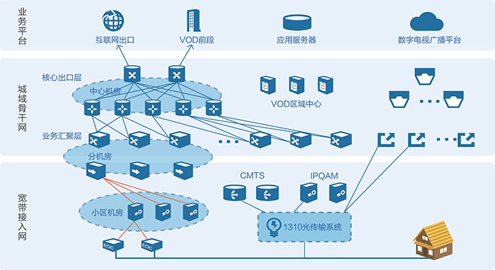 新一代广电综合网管提供对广电网络全网设备进行管理,包括接入网、核心网,具有网络的告警、故障、性能和测试等功能,是集中管理、集中监控、集中维护平台。